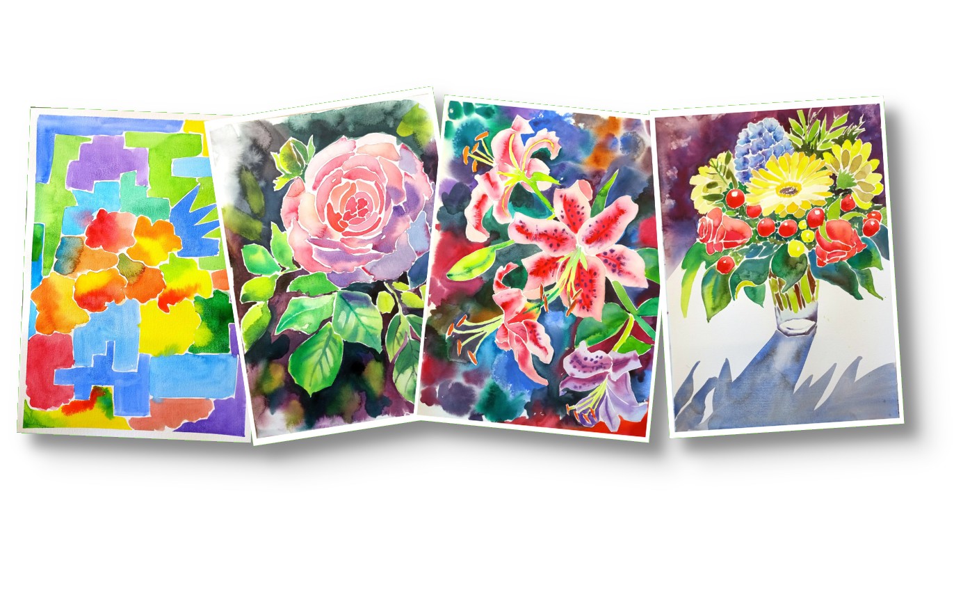 Lerne und übe, wunderschöne Blumen in VIER unterschiedlichen Aquarelltechniken zu malen. Der Kursbündel mit insgesamt DREIZEHN herrlichen floralen Motiven in den Techniken
