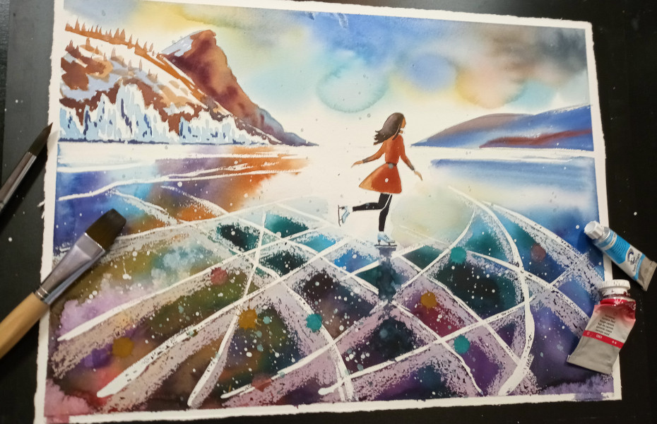Wir erkunden die eisige Schönheit der sibirischen Wildnis, wo ein gefrorener Wintersee und eine junge Eisläuferin unsere Inspiration sind. Tauche ein in die Magie dieser frostigen Szenerie! Wir werden die faszinierenden Eisspalten mit Wachs gestalten und ihre einzigartige Struktur und Tiefe hervorheben. Begleite mich auf dieser kreativen Reise!