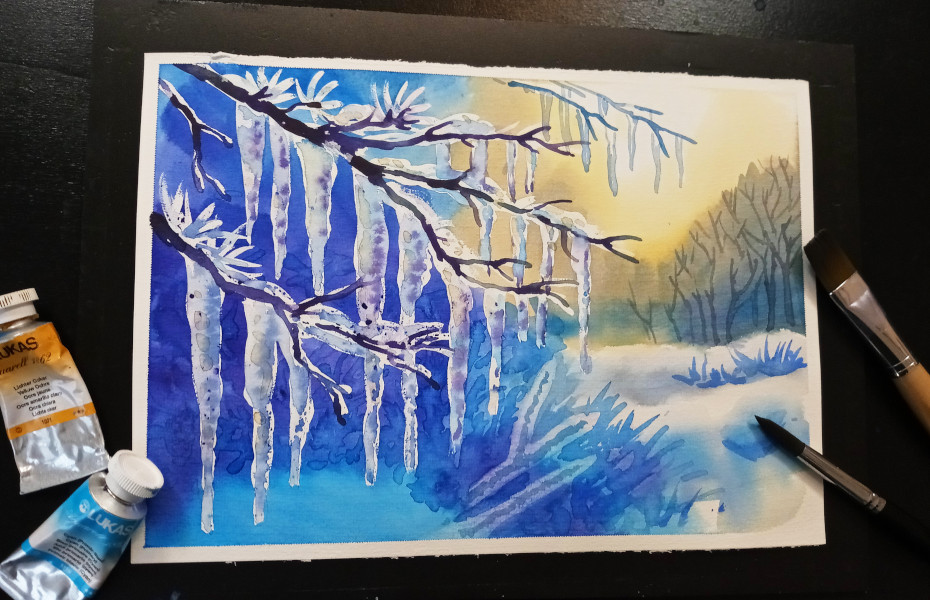 Entdecke die Magie des Eises in der Aquarellmalerei mit 5 Motiven und vielfältigen Techniken. Lerne, Eisformationen, gefrorene Seen und arktische Landschaften zu malen.