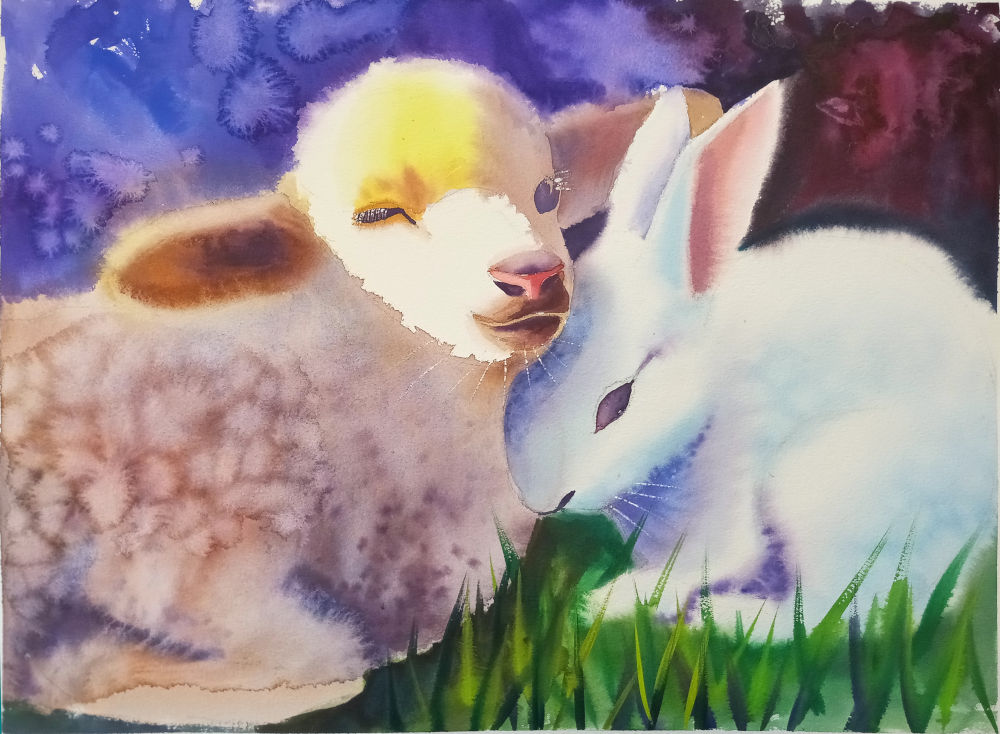 Die Aquarelltechniken Nass-in-Nass mit Lasuren und Farbspritzern