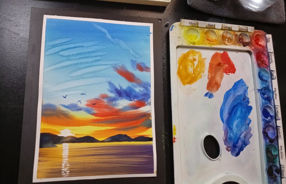 die Geheimnisse der Aquarelltechnik lernen und mit beeindruckenden Himmelsszenen experimentieren