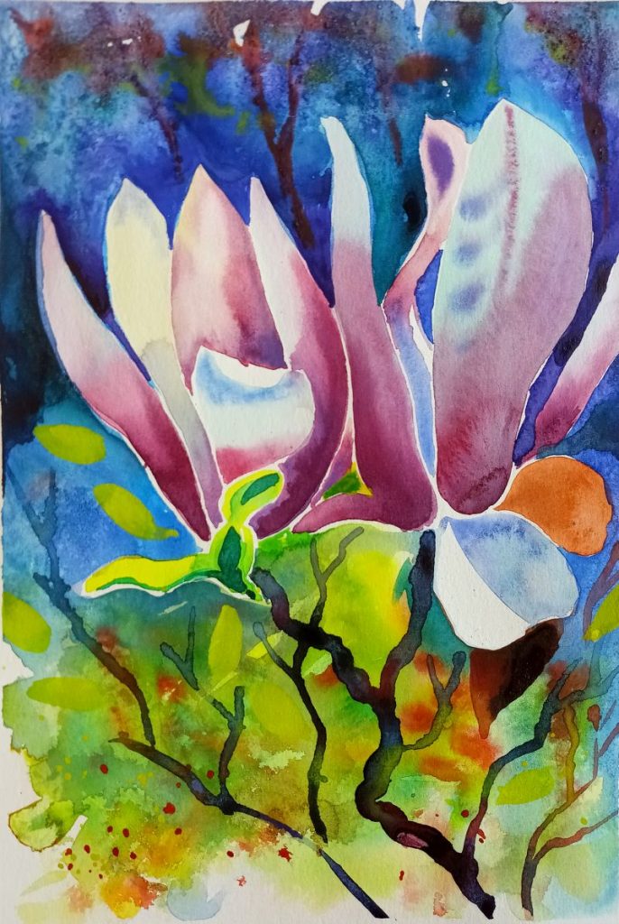 Die Aquarelltechniken Nass-in-Nass mit Lasuren und Farbspritzern