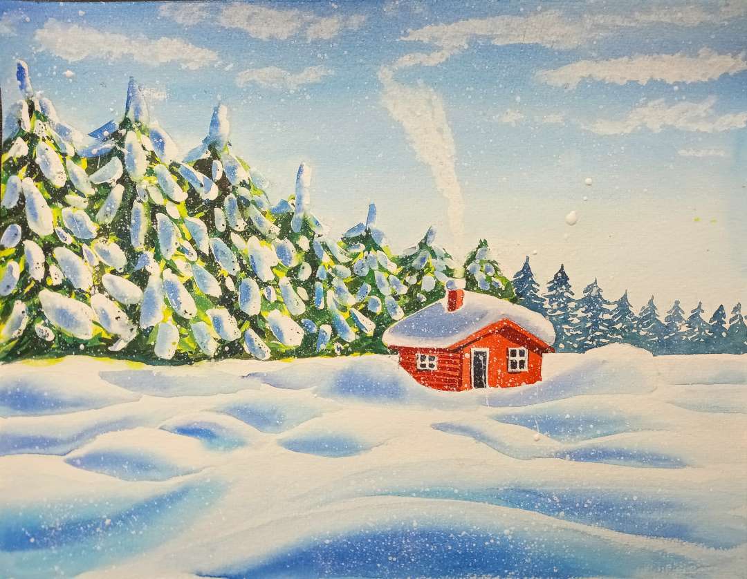 Ein frostiges und trotzdem gemütliches Motiv aus der verschneiten Winterzeit zum Mitmalen. Wir nutzen mehrere Vorlagebilder, um dieses eine Motiv individuell zusammenzustellen. Unter der präzisen Anleitung und begleitenden Kommentaren des Künstlers gelangst du Strich für Strich zu diesem fertigen Aquarellbild.