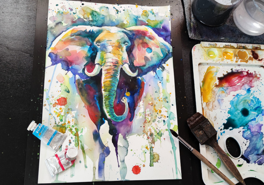 In diesem faszinierenden Aquarell-Tutorial erschaffen wir gemeinsam ein imposantes afrikanisches Elefantenporträt! Tauche ein in die wunderbare Welt der spontanen und expressiven Aquarellmalerei, wo wir die Leinwand mit lebendigen Farben zum Leben erwecken und die einzigartige Schönheit dieser majestätischen Kreatur einfangen. Lass uns gemeinsam die Kraft und Eleganz des Afrikanischen Elefanten in einem farbenfrohen und fröhlichen Stil zum Ausdruck bringen!
