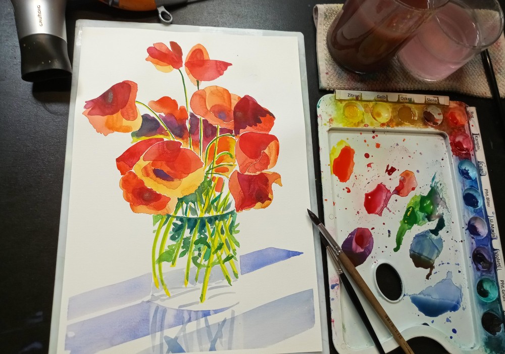 Aquarell-Tutorial: Klatschmohn in Lasurtechnik