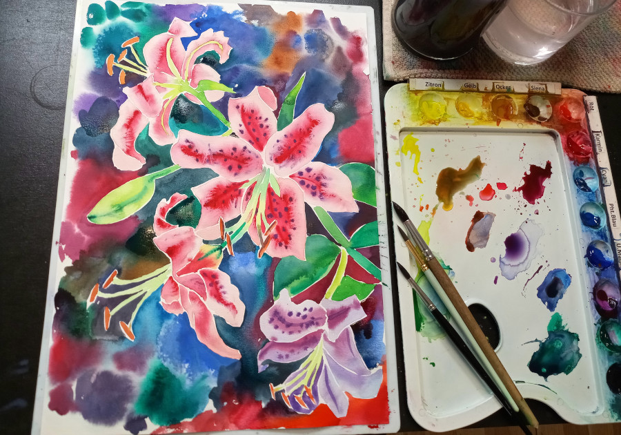 Aquarell-Tutorial: Tigerlilien in Mosaik-Technik